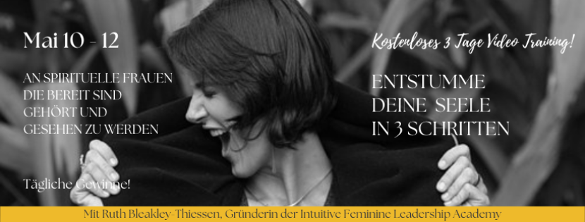 Komm zu einem KOSTENFREIEN 3-tägigen Training von Dienstag, 10. Mai, bis Donnerstag, 12. Mai, "Entstumme Deine Seele in 3 Schritten", in dem ich Dir von 17 - 18 Uhr erzähle, wie Du: